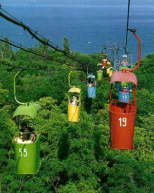 The gondola ride up the hill near the beach Lanzheron. Odessa is built upon a 30 meter (100 ft) plateau that overlooks the Black Sea, and as such, all Odessites are good climbers (except those who ride this gondola).